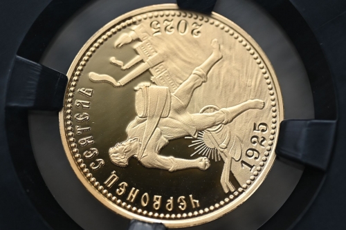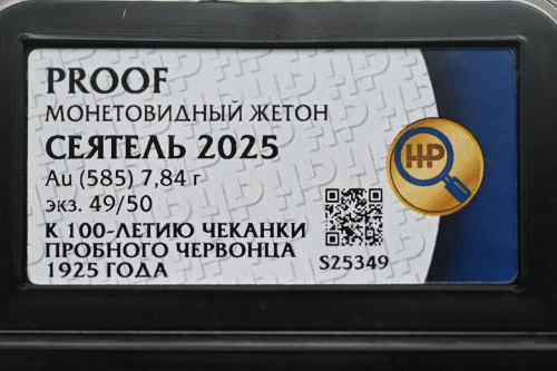 Червонец Сеятель 2025г.,Золото, "К 100-летию чеканки пробного Червонца 1925г." в слабе ННР PROOF