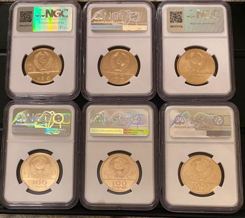 Набор золотых монет 100 рублей "Олимпиада 80" в слабах NGC MS 69