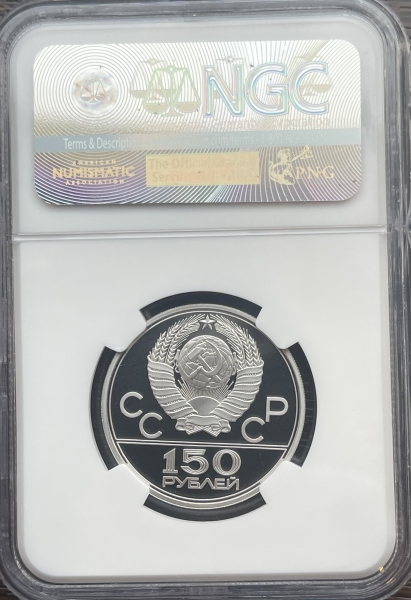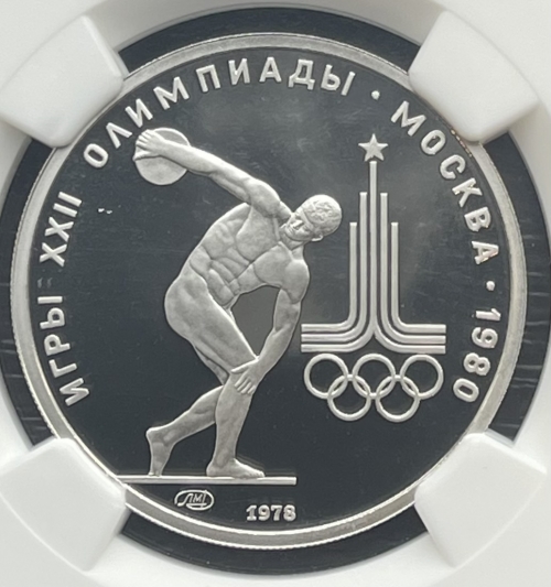 Платиновая монета 150 рублей "Дискобол" 1978г. ЛМД в слабе NGC PROOF 69 ULTRA CAMEO