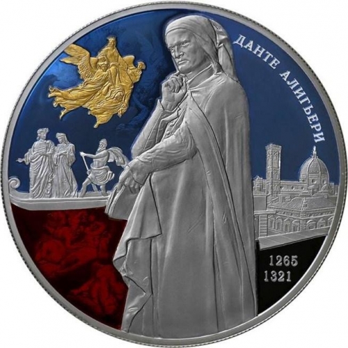 Серебряная монета 25 рублей "750-летие со дня рождения Данте Алигьери (в специальном исполнении)", 2015 год, 155,5 грамм