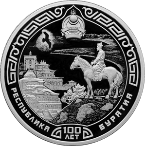 Серебряная монета 3 рубля "100-летие образование Республики Бурятия" 31,1г., Ag 925 , Proof, 2023г.