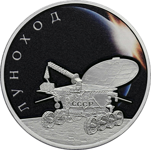 Серебряная монета 3 рубля "Луноход" 2022г., 31,1 г. 925 проба, ПРУФ
