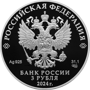 Серебряная монета 3 рубля "300-летие Российской академии наук" 31,1г. 2024 г.