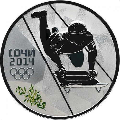 Серебряная монета 3 рубля "Сочи 2014" - "Скелетон" СПМД, 31,1г.