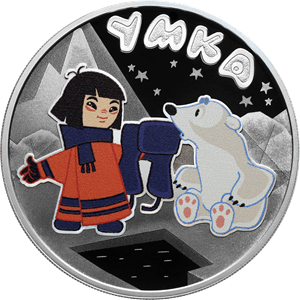 Серебряная монета 3 рубля "Умка" Ag 925, 31,1 г., 2021 год, ПРУФ