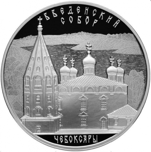 Серебряная монета 3 рубля "Введенский собор, г. Чебоксары", 2013 год, 31,1г., Ag 925, ПРУФ