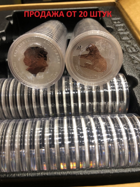 Вы всегда можете купить или продать, а также узнать текущую стоимость монеты - 'Серебряная монета Австралии 1 доллар Год Тигра 1 унция (oz) 2010 год' в г.Калуга (Калужская область). У нас Вы получите полную и необходимую консультация от квалифицированных специалистов и профессионалов, работающих на рынке инвестиций в драгметаллы уже долгое время. Мы стараемся предложить нашим клиентам лучшие цены выкупа и продажи на рынке (с минимальным спредом), а также гарантируем конфиденциальность всех проводимых сделок.