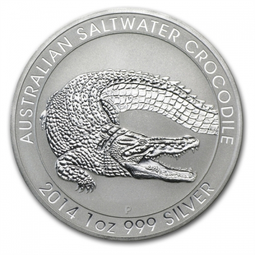 Серебряная монета Австралии 1 доллар "Крокодил" 1 oz 2014 год