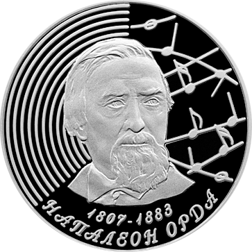 Реверс: в центре –– рельефное изображение портрета Наполеона Орды, выдающегося художника, композитора и публициста, на фоне круговых линий и хаотично расположенных нот; внизу – надписи по кругу в две строки: 1807–1883 и НАПАЛЕОН ОРДА.