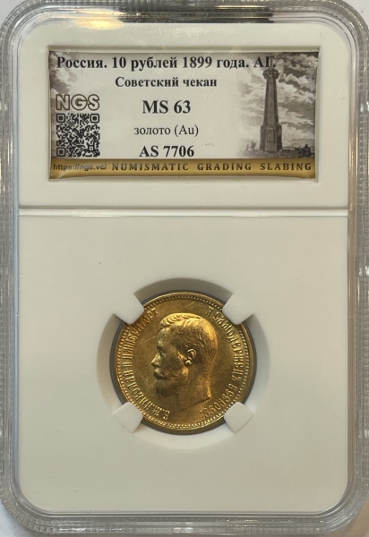 Вы всегда можете купить или продать, а также узнать текущую стоимость монеты - 'Золотая монета 10 рублей Николай II 1899г., в слабе NGS MS 63' в г.Калуга (Калужская область). У нас Вы получите полную и необходимую консультация от квалифицированных специалистов и профессионалов, работающих на рынке инвестиций в драгметаллы уже долгое время. Мы стараемся предложить нашим клиентам лучшие цены выкупа и продажи на рынке (с минимальным спредом), а также гарантируем конфиденциальность всех проводимых сделок.