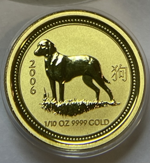 Золотая монета 15 долларов "Год Собаки" 2006 г., Лунный календарь, Австралия, Au 9999, 3,11 г.