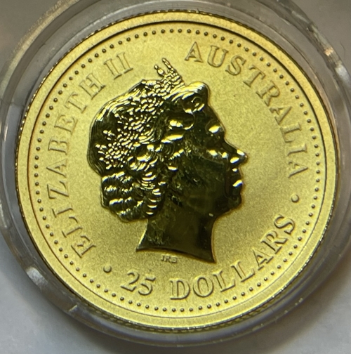 Золотая монета 25 долларов "Год Обезьяны" 2004 г., Австралия, Лунный календарь, Au 9999, 7,78 г.