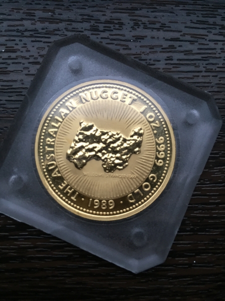 Золотая монета Австралии 100 долларов "Наггет" 31,1 грамм 1989 год