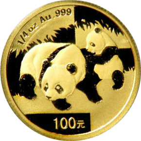 Золотая монета Китая "Панда", 100 юаней 1/4 унции