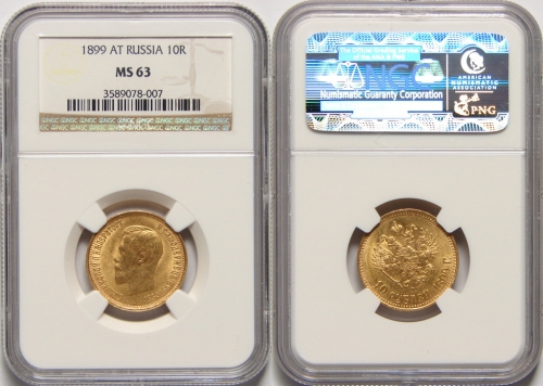 Вы всегда можете купить или продать, а также узнать текущую стоимость монеты - 'Золотая монета Николая II 10 рублей 1899 год состояние MS 63' в г.Калуга (Калужская область). У нас Вы получите полную и необходимую консультация от квалифицированных специалистов и профессионалов, работающих на рынке инвестиций в драгметаллы уже долгое время. Мы стараемся предложить нашим клиентам лучшие цены выкупа и продажи на рынке (с минимальным спредом), а также гарантируем конфиденциальность всех проводимых сделок.
