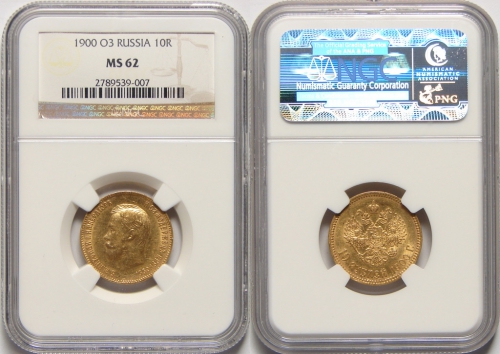 Вы всегда можете купить или продать, а также узнать текущую стоимость монеты - 'Золотая монета Николая II 10 рублей 1900 год состояние MS 62' в г.Калуга (Калужская область). У нас Вы получите полную и необходимую консультация от квалифицированных специалистов и профессионалов, работающих на рынке инвестиций в драгметаллы уже долгое время. Мы стараемся предложить нашим клиентам лучшие цены выкупа и продажи на рынке (с минимальным спредом), а также гарантируем конфиденциальность всех проводимых сделок.