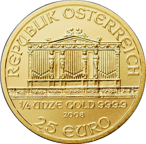 Вы всегда можете купить или продать, а также узнать текущую стоимость монеты - 'Золотая монета Венская Филармония (Филармоникер) Austrian Gold Philharmonic 1/4 унции 25 евро' в г.Калуга (Калужская область). У нас Вы получите полную и необходимую консультация от квалифицированных специалистов и профессионалов, работающих на рынке инвестиций в драгметаллы уже долгое время. Мы стараемся предложить нашим клиентам лучшие цены выкупа и продажи на рынке (с минимальным спредом), а также гарантируем конфиденциальность всех проводимых сделок.